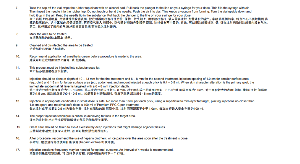 Premium PPC.C is highly effective on the stubborn and thicker fat area and should not be used on the cheek and chin.