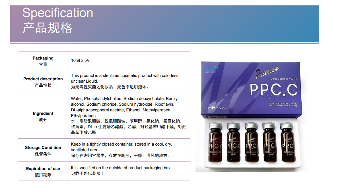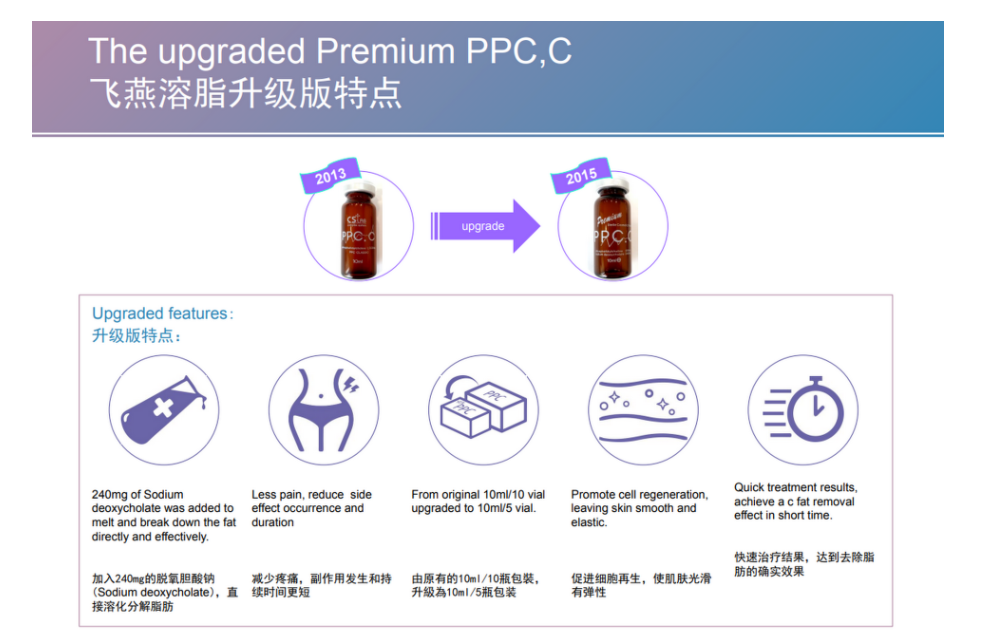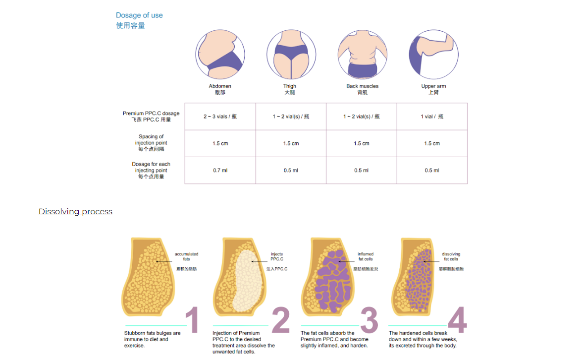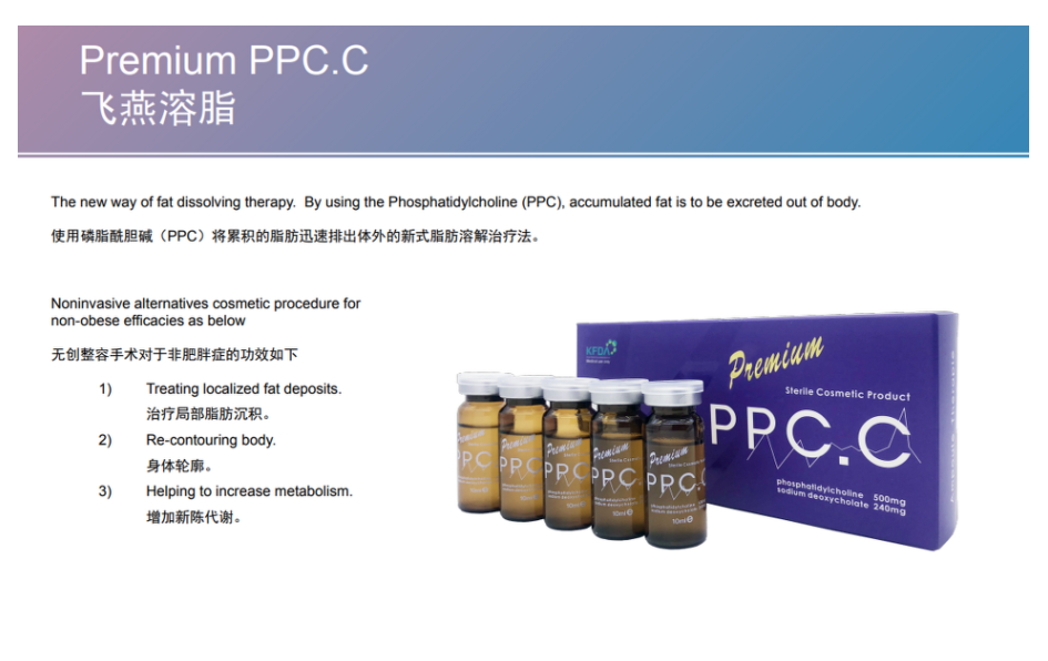 Premium PPC.C is a famous fat dissolver that Rapidly dissolves enzymes and discharges fat out of the body. PREMIUM PPC.C dissolves fat with lecithin and expedites cell regeneration.