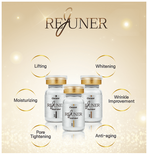REJUNER Black Label is a premium collagen boosting solution that can visibly improve skin texture and brighten the skin. REJUNER Black Label can also stimulate fibroblast and improve the overall condition of the skin. Moreover, REJUNER Black Label can improve the appearance of wrinkles and fine lines by restoring skin density. In addition, REJUNER Black Label is made of a unique particle free PCL solution, which allows it to be administered using a thinner 33~34G needle.