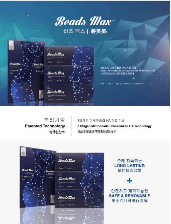 Beads Max Mid Dermal Filler is a high-quality hyaluronic acid (HA) filler crafted using advanced 3-stage microbead technology.