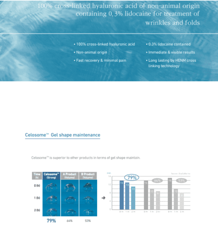Celosome Implant Dermal Filler excels in quality and performance due to its advanced production technology by ExoCobio. Its ultra-pure water system and multi-stage purification minimize impurities and ensure safety. The HENM cross-linking technology enhances durability and ensures the filler retains its initial shape post-application, making it a preferred choice for patients and practitioners alike.