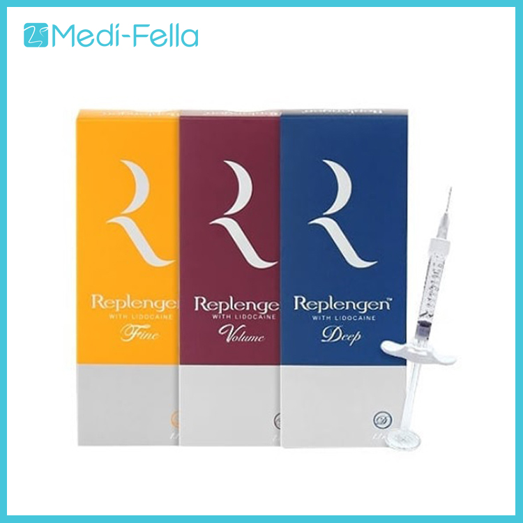 REPLENGEN Volume Dermal Filler is a syringe-based medical device used to restore volume and enhance the structure of the face and body by addressing wrinkles. Its unique formulation with hyaluronic acid (HA) has antibacterial, anti-inflammatory, and lubricating effects, contributing to smoother, more comfortable injections. The procedure typically takes 15 minutes, and results are visible immediately after injection. REPLENGEN Volume also features GI (Grinding Irregular) technology that refines gel particles for smooth injections and stable operation.