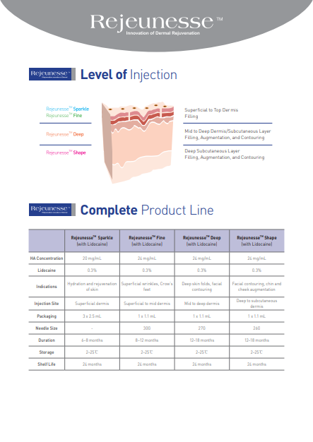 Procedure: Rejeunesse Shape is injected into the deep dermis and subcutaneous layers to treat deep depressions, lines, and for facial contouring. It is especially effective for chin and cheek augmentation. The injection process typically takes 15 to 30 minutes and is minimally invasive with low downtime.