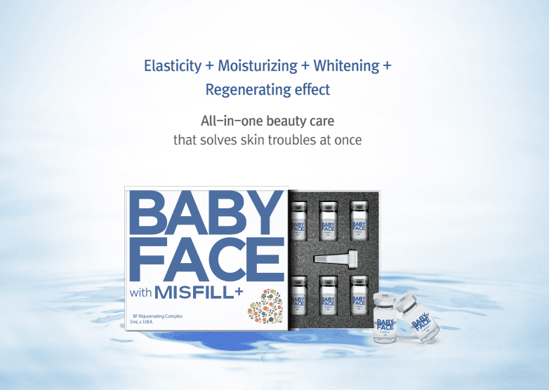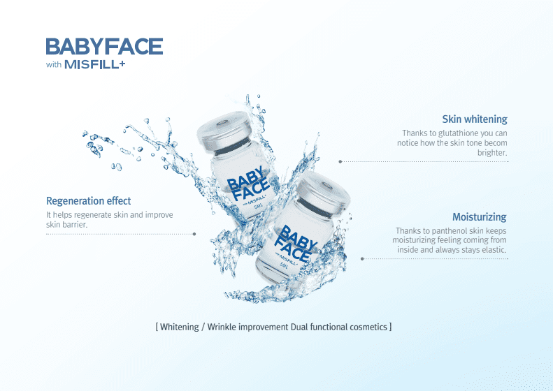 MISFILL+ BABY FACE is a highly effective skin booster that has the aim to regenerate the skin, making it brighter. Moreover, Misfill+ Baby Face works on fine lines and small wrinkles, visible through the dead skin layer, and also lightens the skin with high pigmentation problems.
