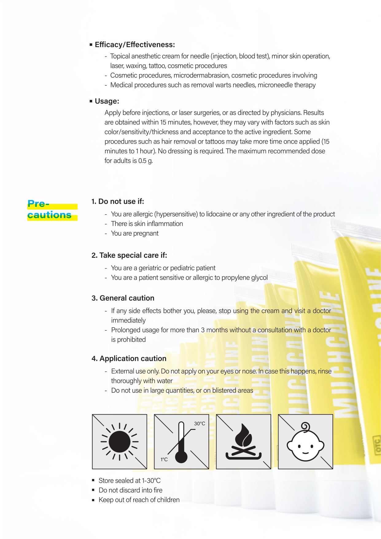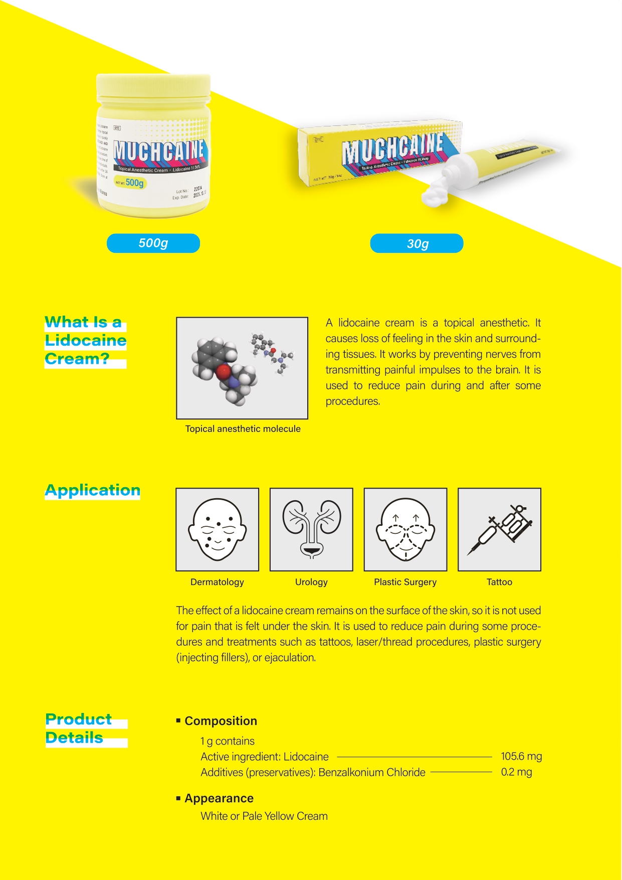 2. Apply Muchcaine cream 10.56% before injections, or laser surgeries.